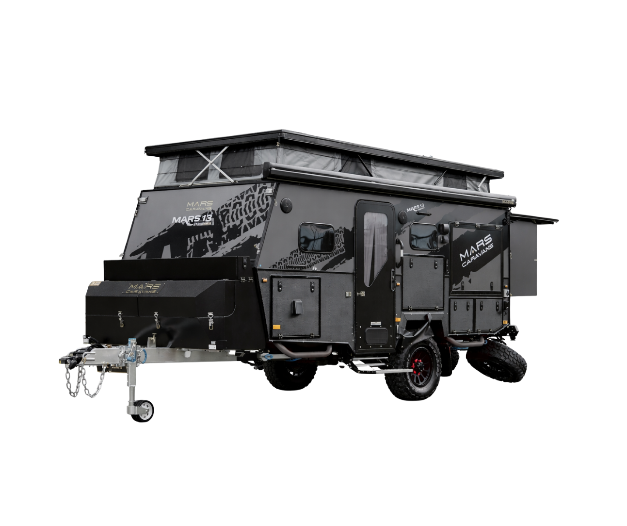 Discover adventure without compromise in the Mars 13 Elite, a brand-new 13 ft hybrid caravan engineered for family fun. Thoughtfully designed to sleep up to 4 people including 2 bunk beds, this compact yet spacious caravan blends rugged capability with everyday comfort — perfect for road trips, weekend getaways or extended off-grid journeys.